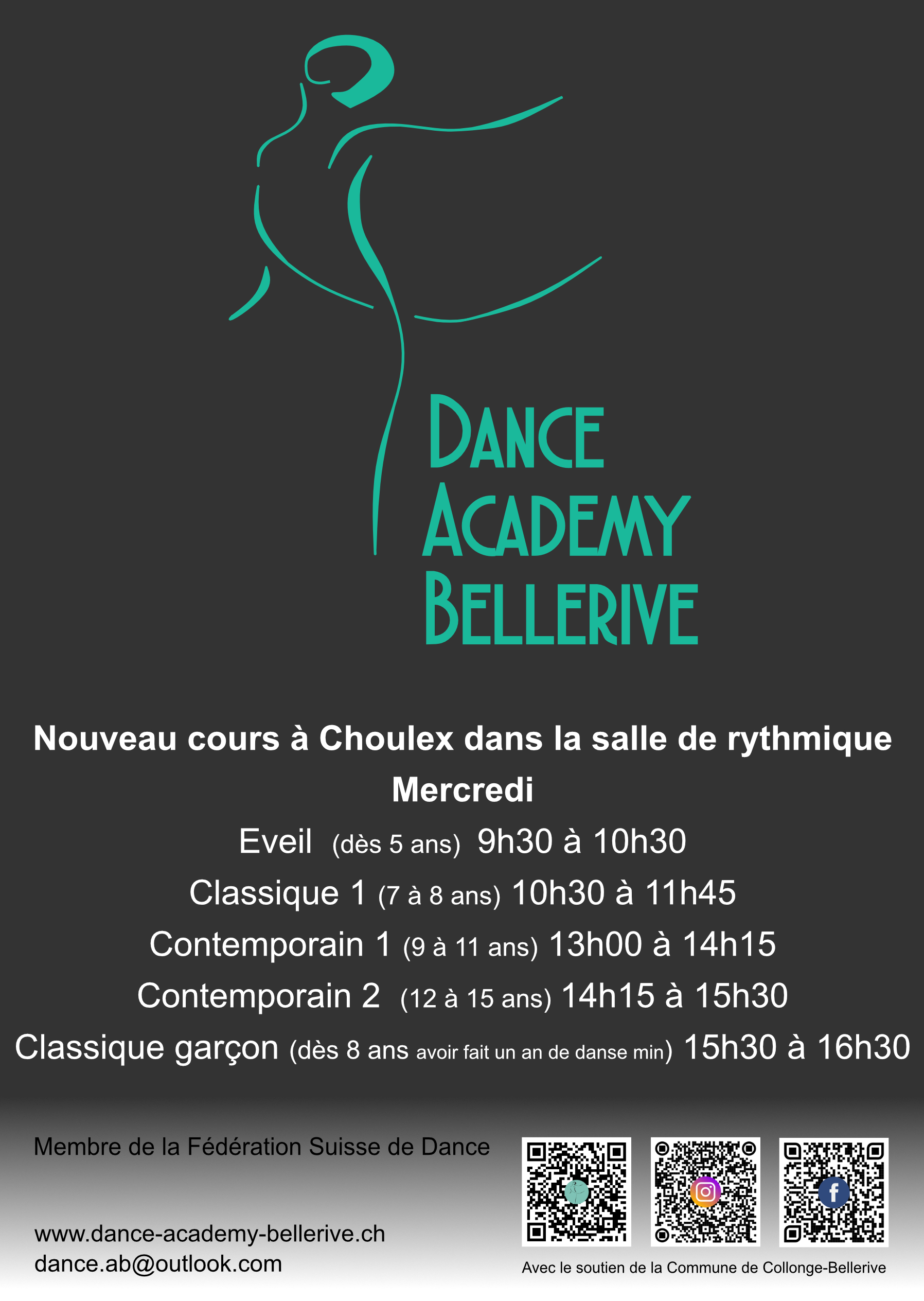 Dance Academy Bellerive proposera dès la rentrée de nouveau cours le mercredi à la salle polyvalente.